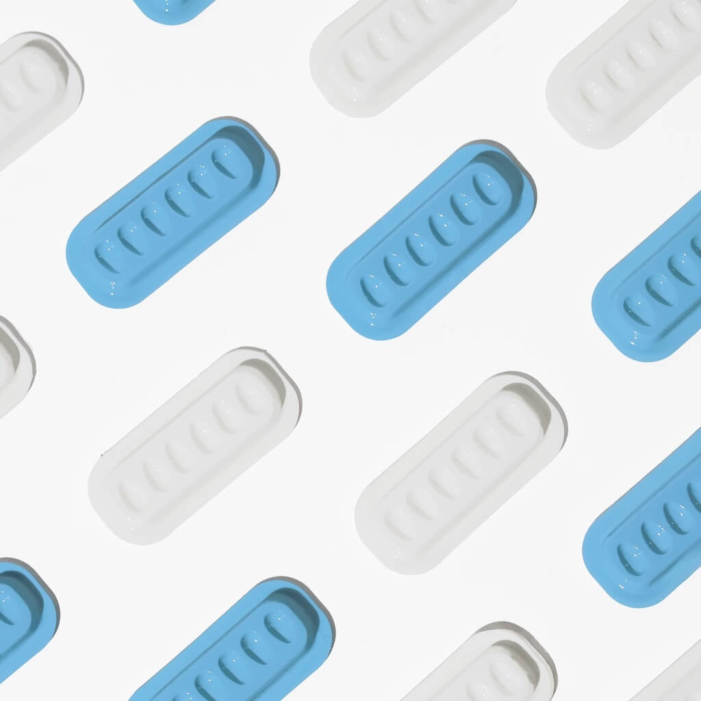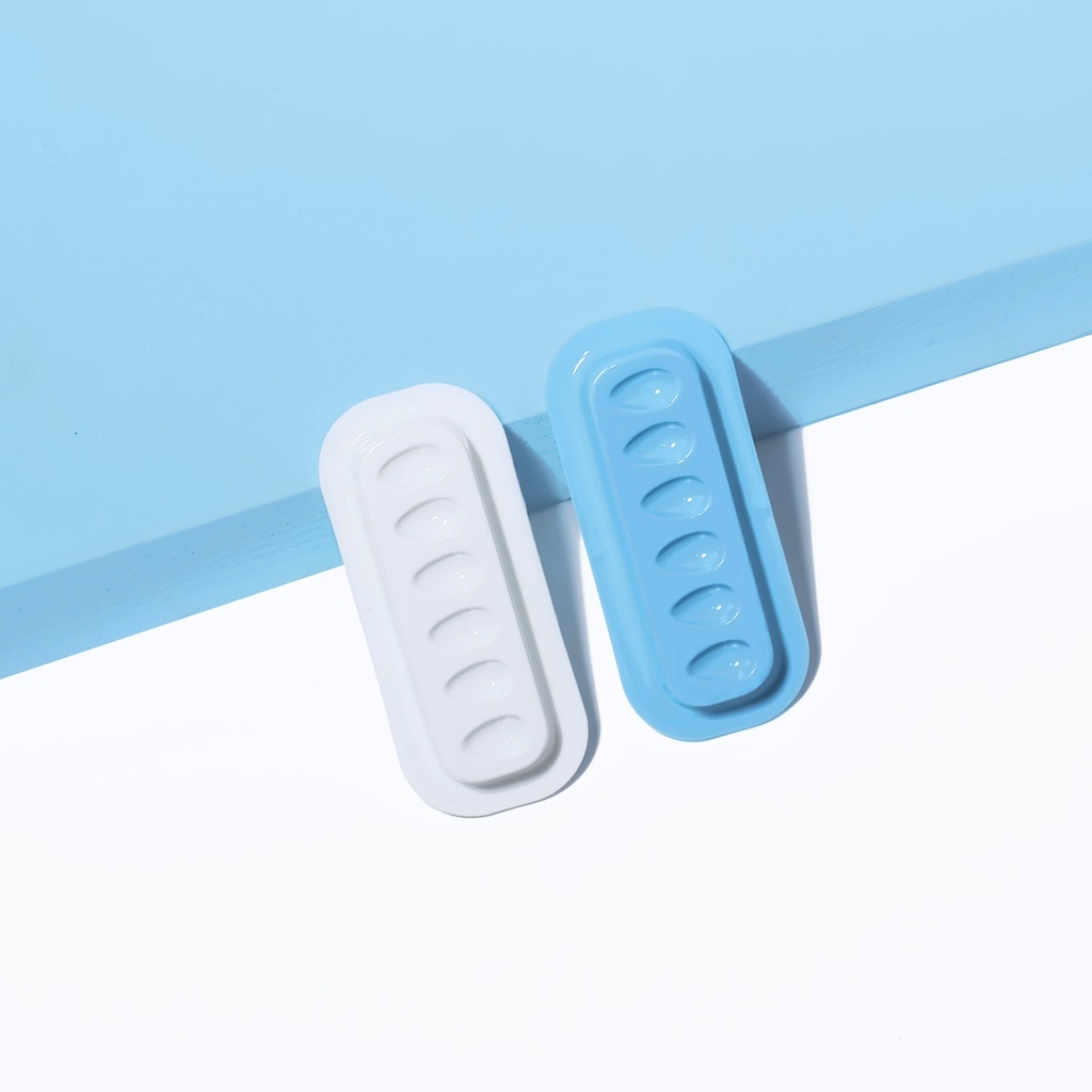 Kertakäyttöön tarkoitettu liimaalusta, jossa on pieniä syvennyksiä. Alustan alla on tarra, jonka avulla se voidaan kiinnittää jadekivelle, lasiselle liimaalustalle tai muulle tasaiselle pinnalle.